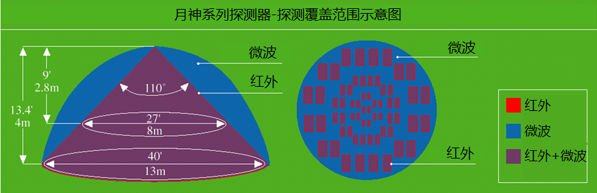 采用微波(MW)技术和被动红外(PIR)技术,微电脑控制,独一无二的高超探测算法